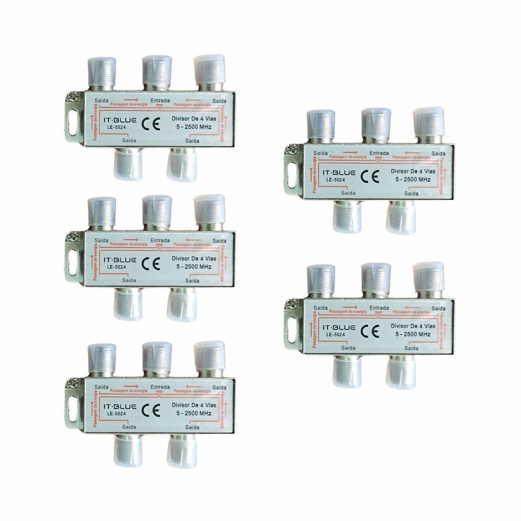 O divisor de antena consta uma entrada de sinal e quatros de saídas.